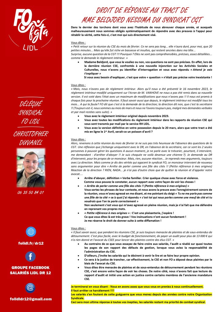 Encore sur la DR12… Publié parFO LIDL3 avril 2024Publié dansNon classé Partager : Cliquer pour partager sur X(ouvre dans une nouvelle fenêtre) X Cliquez pour partager sur Facebook(ouvre dans une nouvelle fenêtre) Facebook J’aime chargement… Similaire
