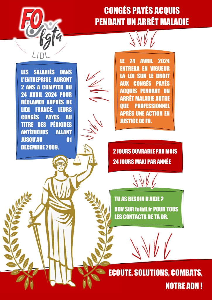 CP acquis pendant un arrêt maladie Publié parFO LIDL10 Mai 2024Publié dansNon classé Partager : Cliquer pour partager sur X(ouvre dans une nouvelle fenêtre) X Cliquez pour partager sur Facebook(ouvre dans une nouvelle fenêtre) Facebook J’aime chargement… Similaire