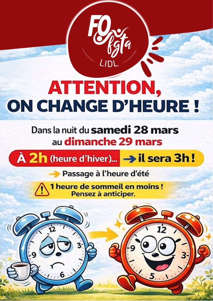 Courage à toutes celles et ceux qui bossent demain matin ! Publié parFO LIDL28 mars 2026Publié dansNon classé Partager : Partager sur X(ouvre dans une nouvelle fenêtre) X Partager sur Facebook(ouvre dans une nouvelle fenêtre) Facebook J’aime chargement… Similaire
