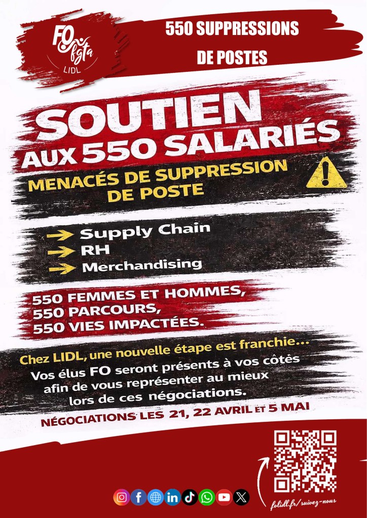 550 suppressions de postes !!! Publié parFO LIDL10 avril 2026Publié dansNon classé Partager : Partager sur X(ouvre dans une nouvelle fenêtre) X Partager sur Facebook(ouvre dans une nouvelle fenêtre) Facebook J’aime chargement… Similaire