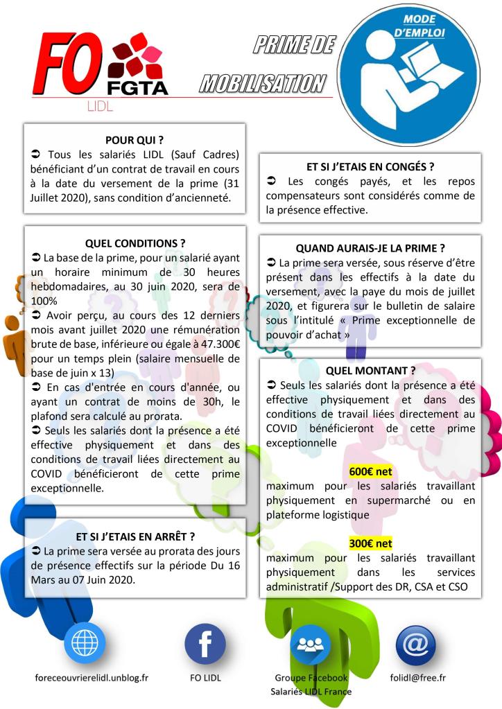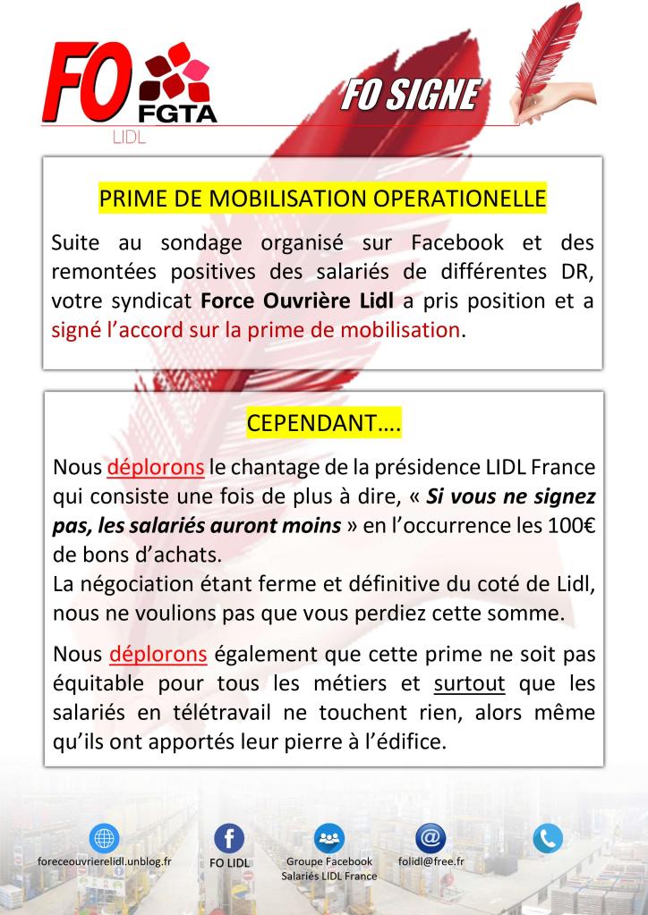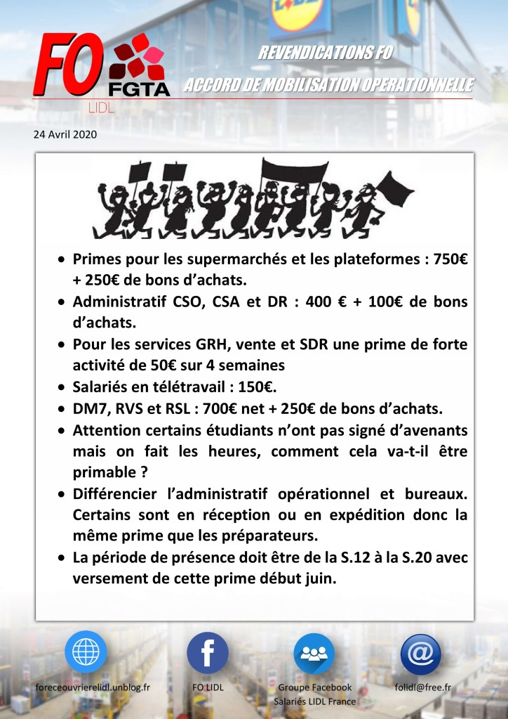 Revendications FO LIDL – Prime de mobilisation