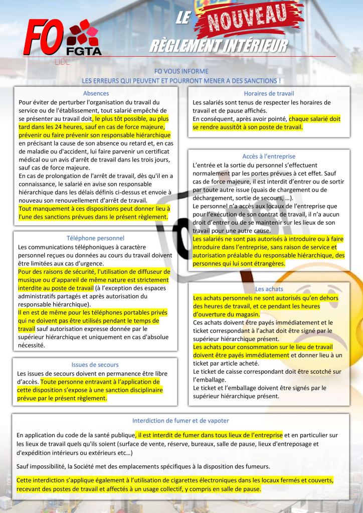 Le nouveau règlement intérieur