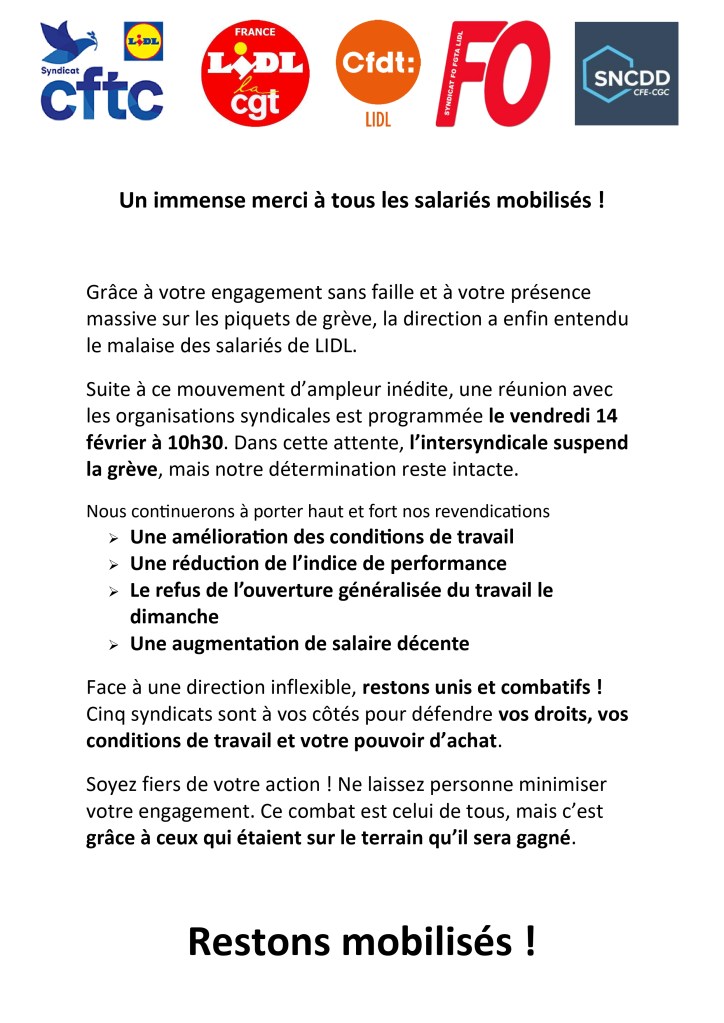 🔊 Il faut que notre message soit entendu au plus haut niveau afin que Lidl prenne enfin ses responsabilités et s’assoie à la table des négociations.