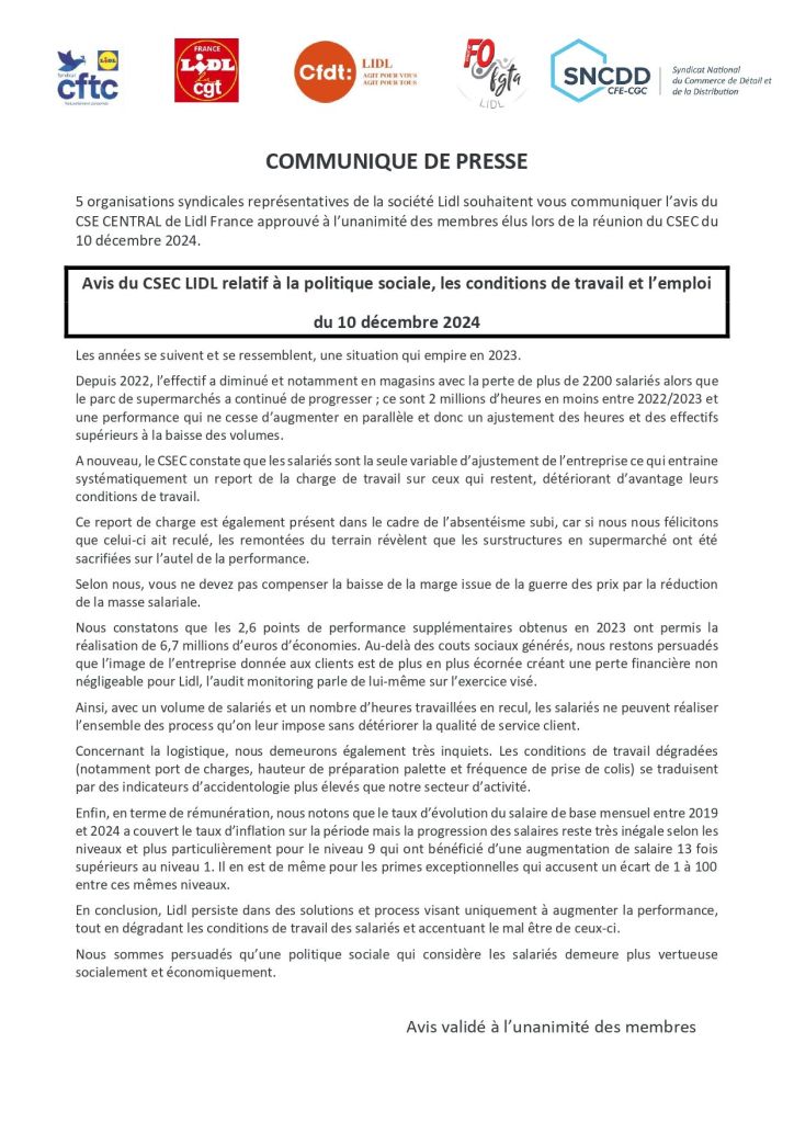 Les conditions de travail et le pouvoir d’achat ne doivent en aucun cas être négligés par la société Lidl, et nous resterons vigilants pour qu’ils soient pleinement pris en compte.